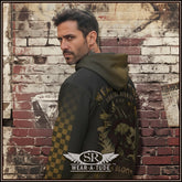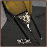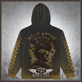 The Punk Blood Zipper Hoodie is a raw, artistic tribute to the outsiders who shaped their own path. The back features a fierce, illustrated punk portrait—moody, sharp, and alive with attitude—framed by distressed golden splashes and SR Wear Atude branding. The “Punk Blood” patch-style text stamps the message loud and clear: this is for the diehards, the believers, the ones who still carry the spark.